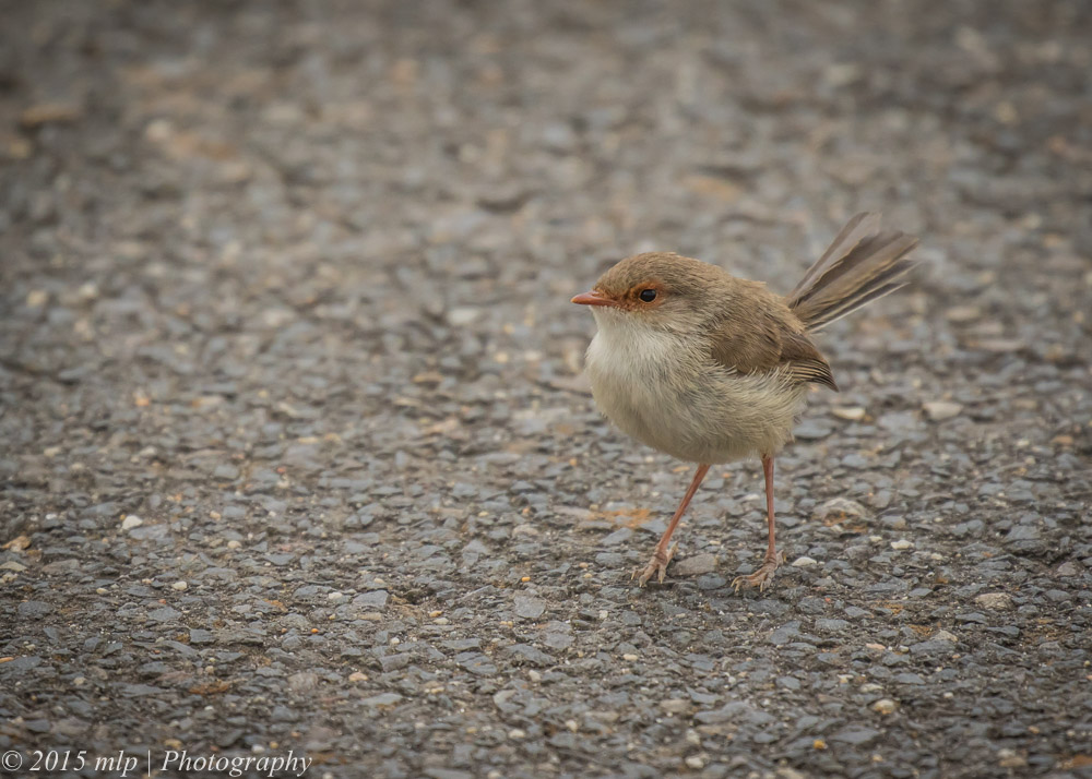 On a visit to a local wetlands, Karkarook Park, in Heatherton, I came across a tiny Superb Fairy Wren chick that practically ran across my foot as I was walking along one of the paths. It stayed right in the centre of the path and ignored me. I stepped back to watch this little family encounter. There were two chicks being fed by two females while several males watched from nearby branches.