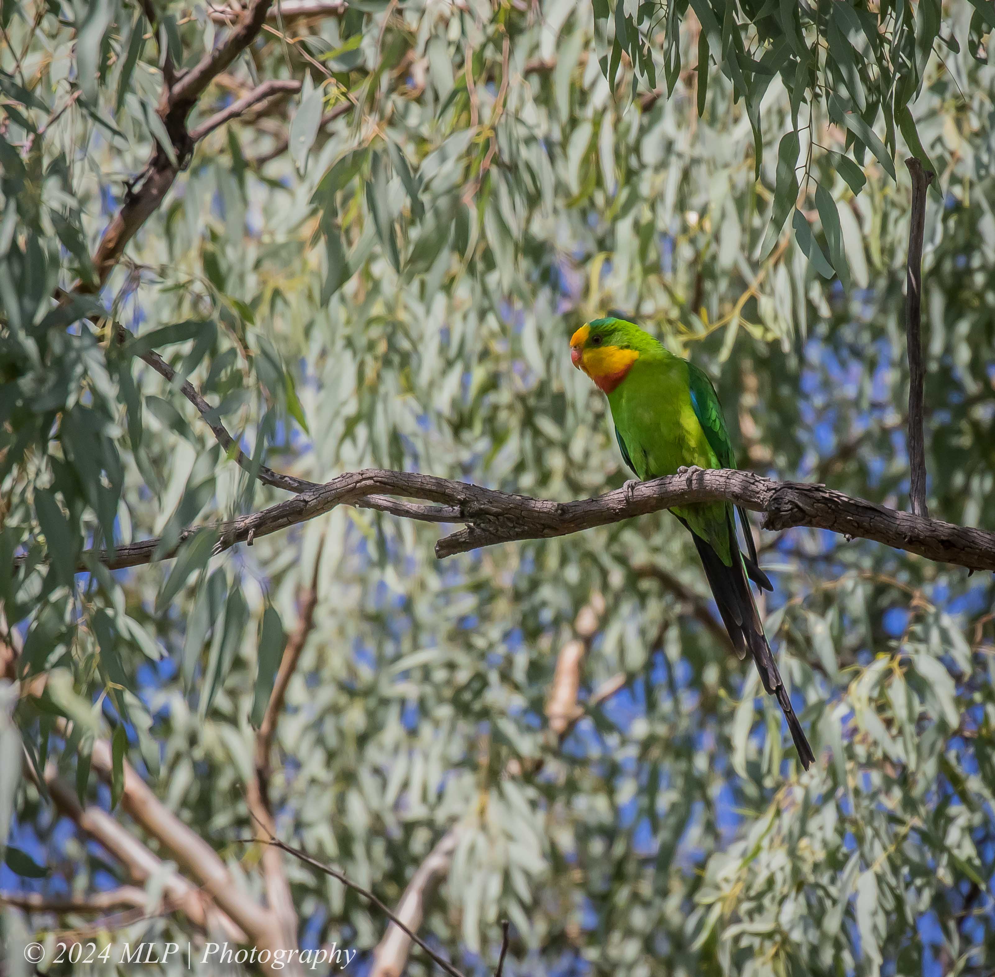 On a trip with a birding buddy to the Chiltern area we explored the surrounding areas. While driving down one of the country laneways we came across a flock of parrots in a roadside forest. On inspection it turned out to be Superb Parrots and a lifer for the trip.