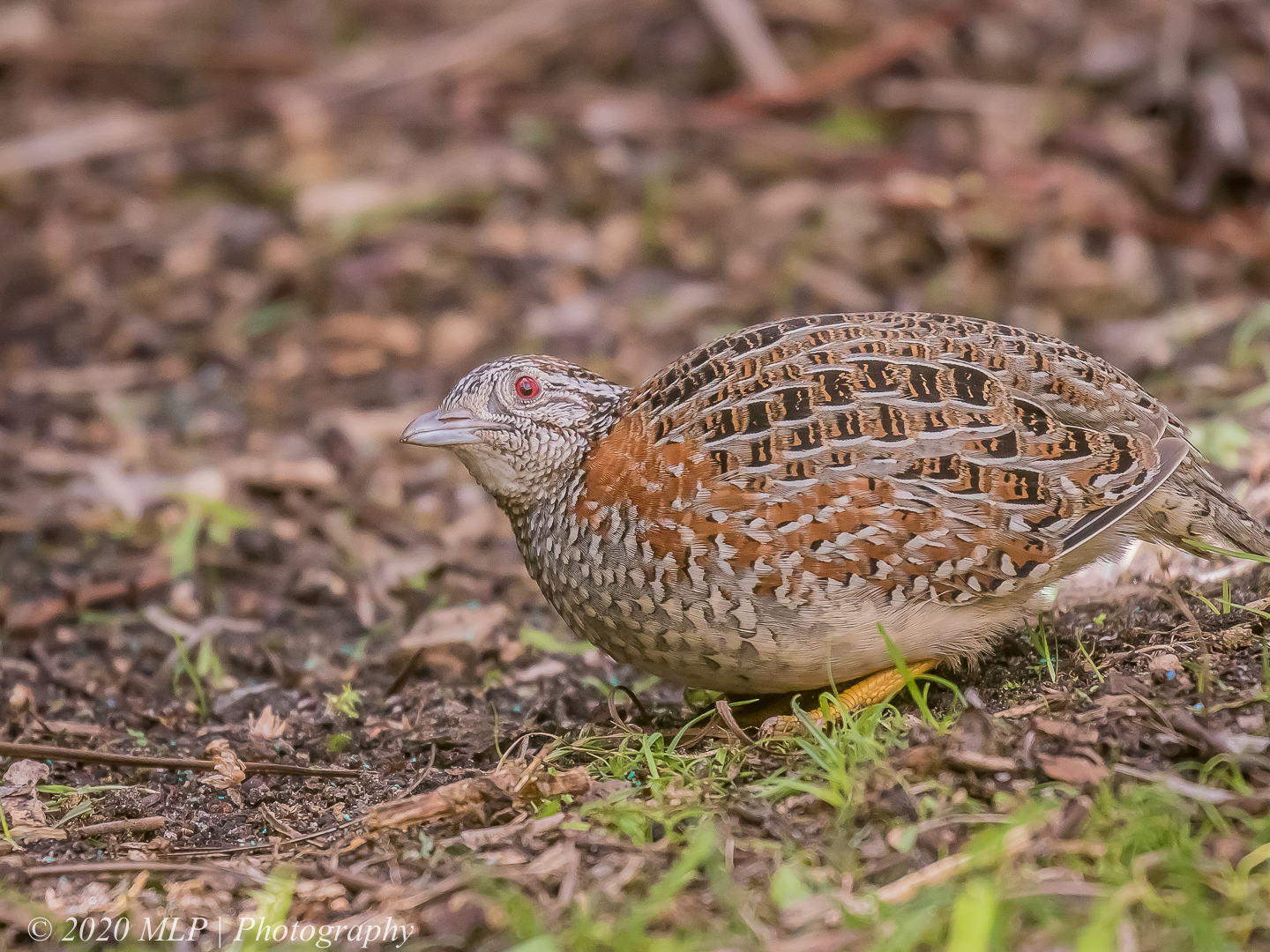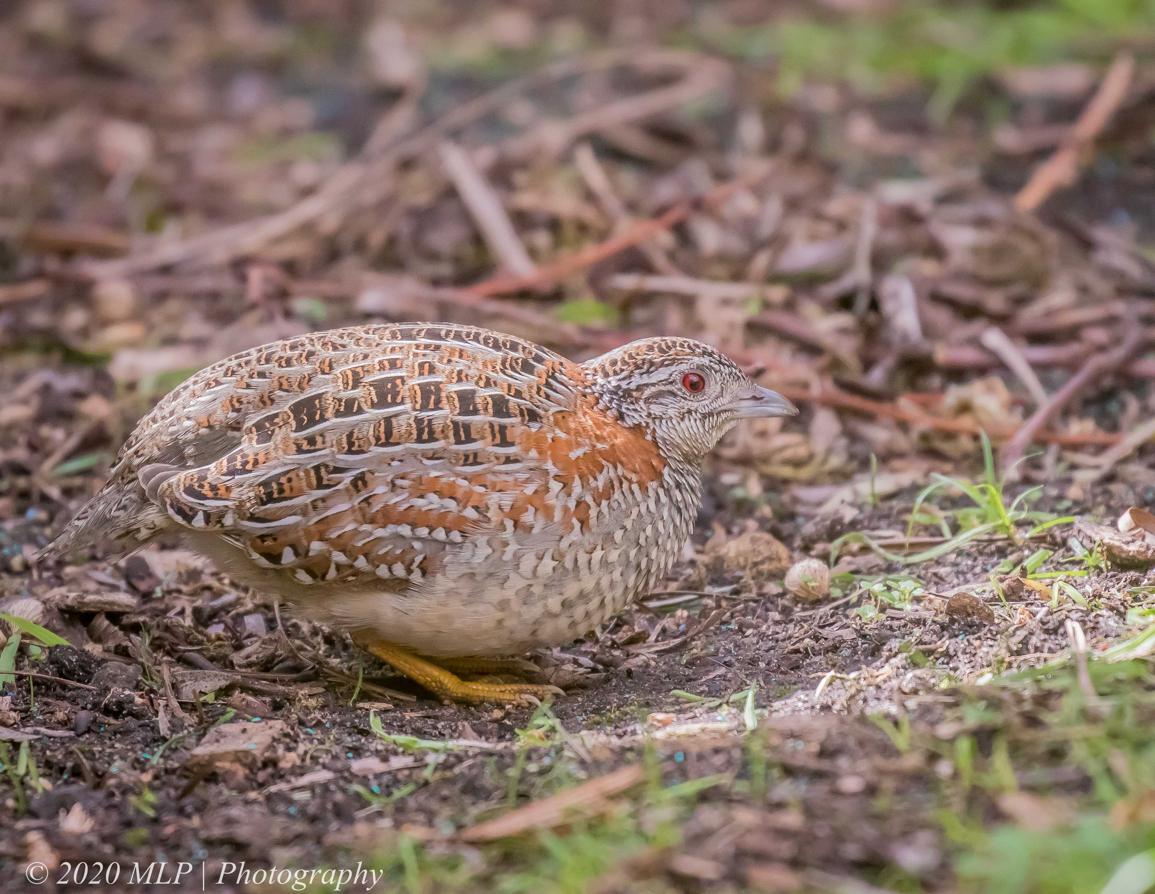 I received a message on the local group alert that a rare (for me) bird had landed in a local backyard, a Painted Buttonquail. It had been seen feeding in the mulch under the trees. The bird seemed to be safe and settled for a while. I took off as fast as I could and managed to clock up another lifer with minimal fuss and expenditure (or damage to my car).