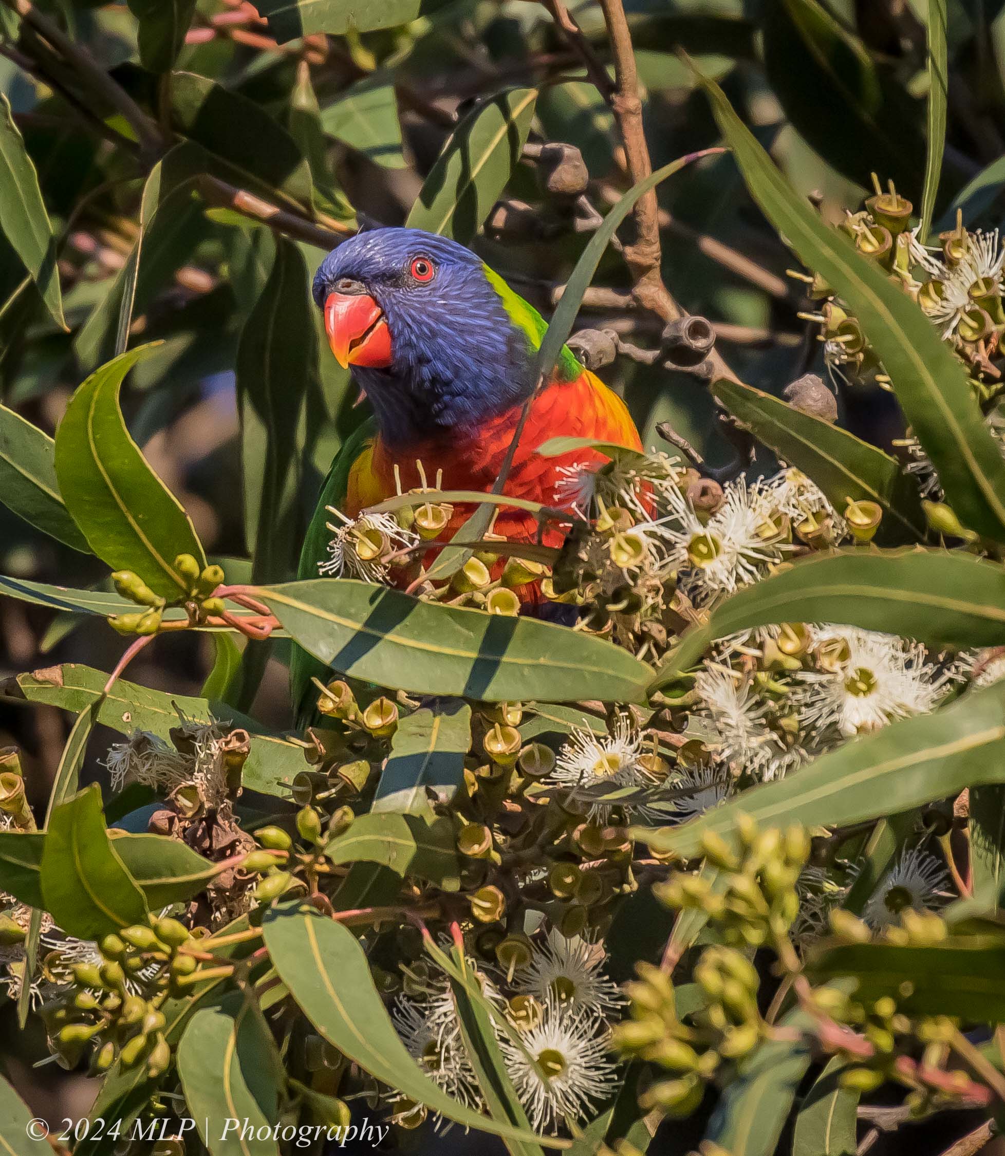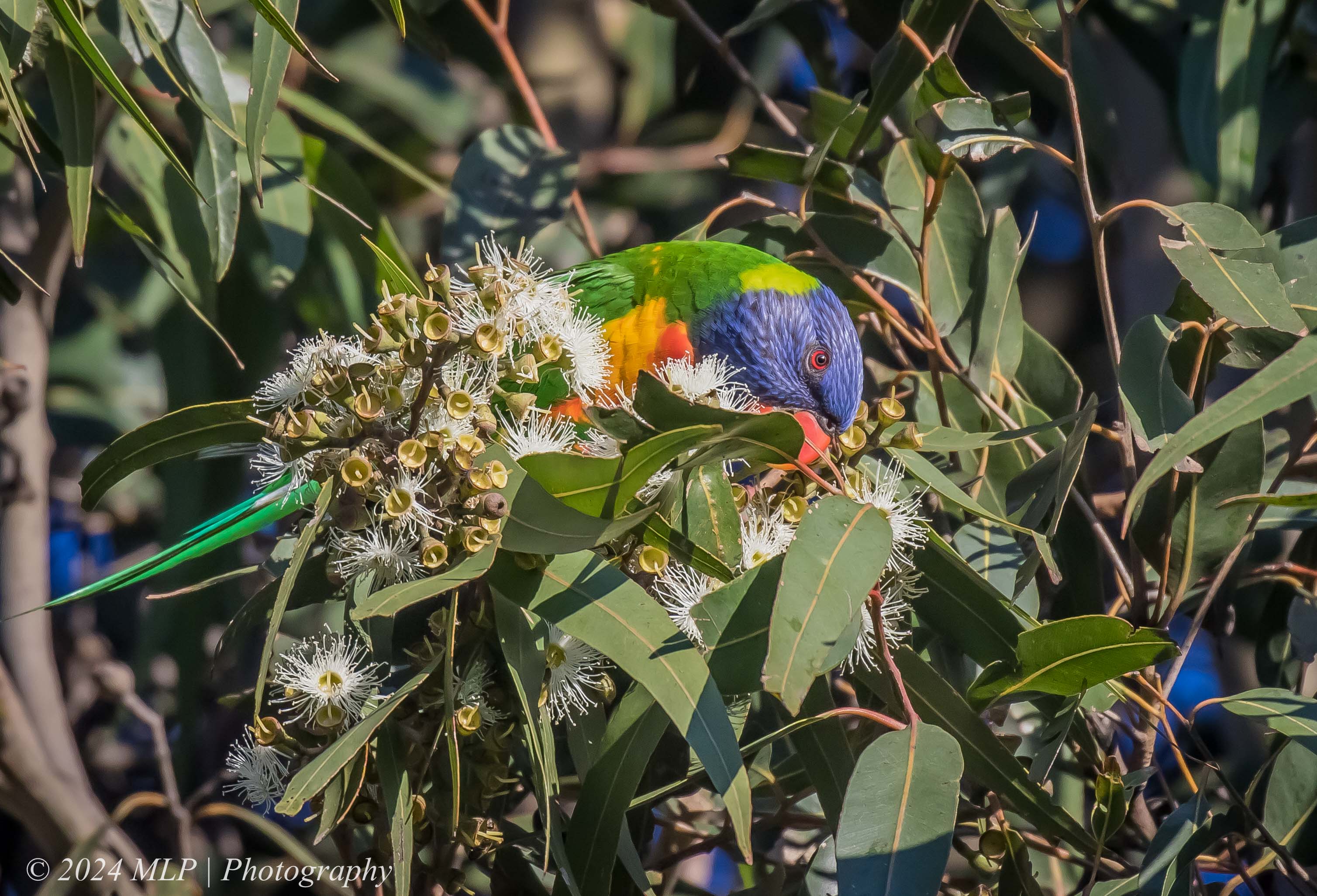 Due to some good rainfall over recent winters many of the large Eucalypts flowered along the Elwood Canal (Elster Creek). Often the trees would be full of squawking Rainbow and Musk Lorikeets. I came across a few Rainbow Lorikeets hanging down from the lower branches, quite happily ignoring me as they fed on the nectar.