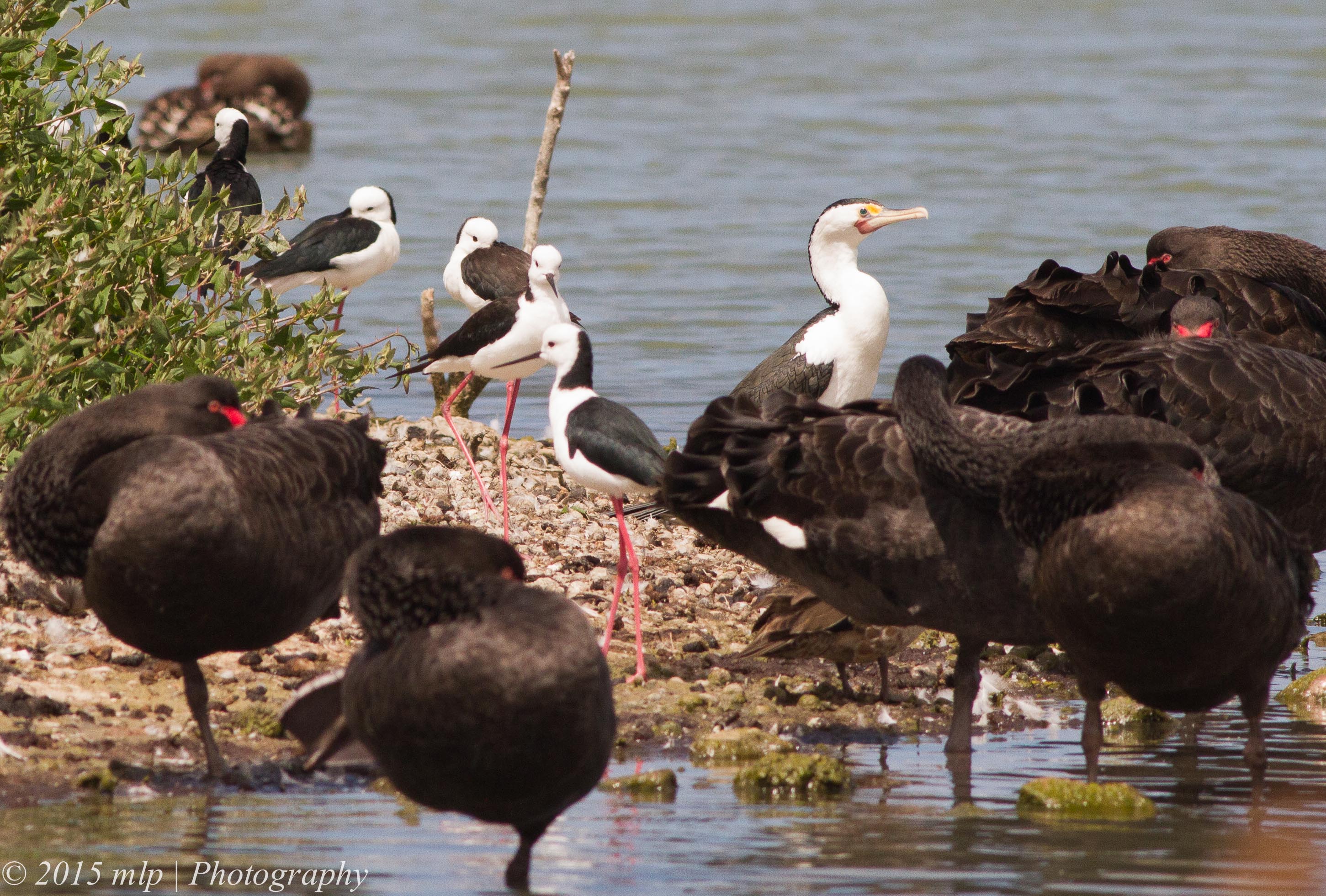 While I was paying a lot of attention to the Black-winged Stilts that were resting and preening on the rowing platforms on Albert Park Lake in inner Melbourne, a pair of swans cruised up to my side and waited patiently to be fed. These semi-tame swans are used to being fed by people at the local picnic tables. Being empty handed I took advantage of their tameness (and hunger) to practice my portrait shots.