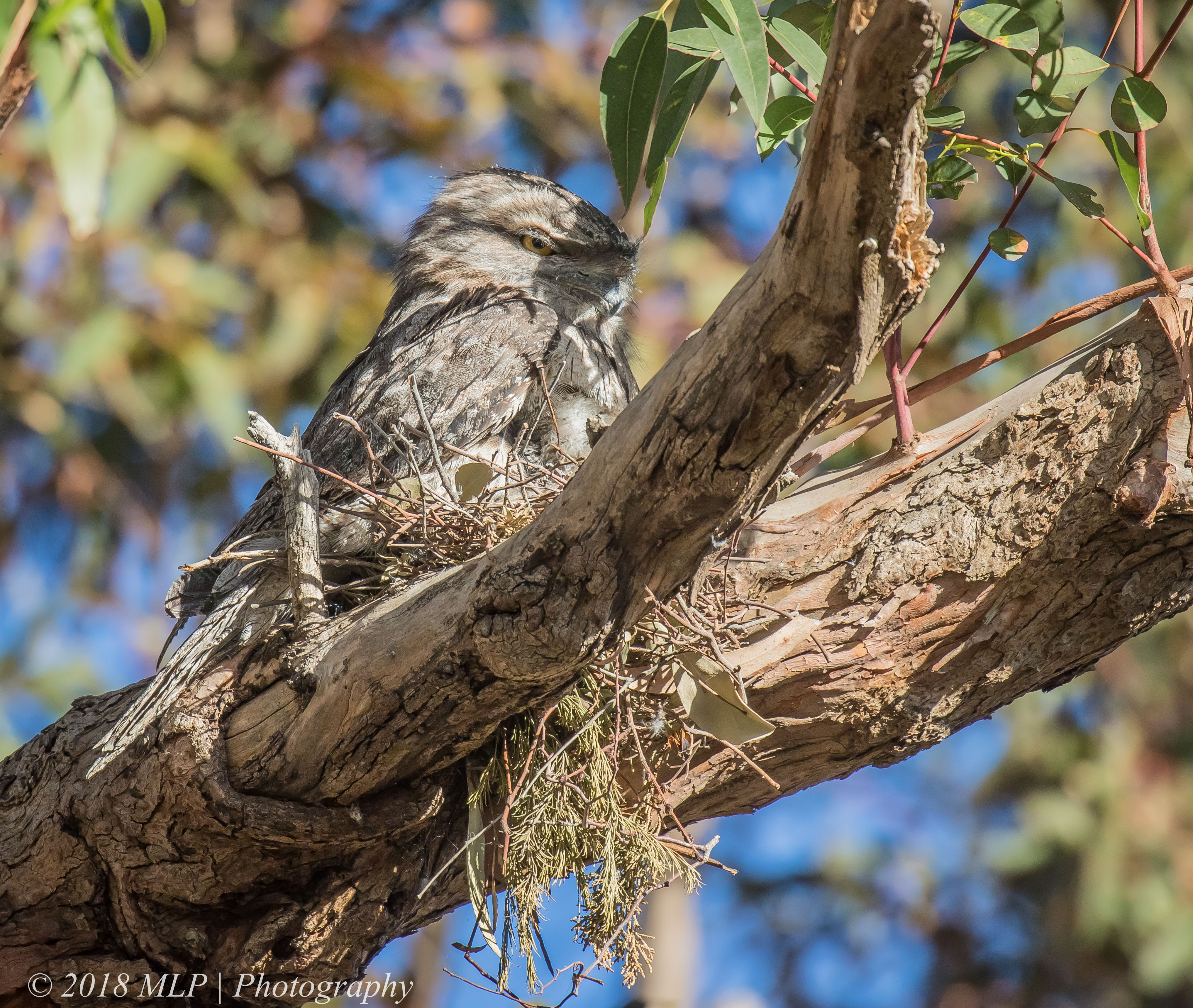 Tawny Frogmouth on nest, Elsternwick Park North, Elsternwick, Vic