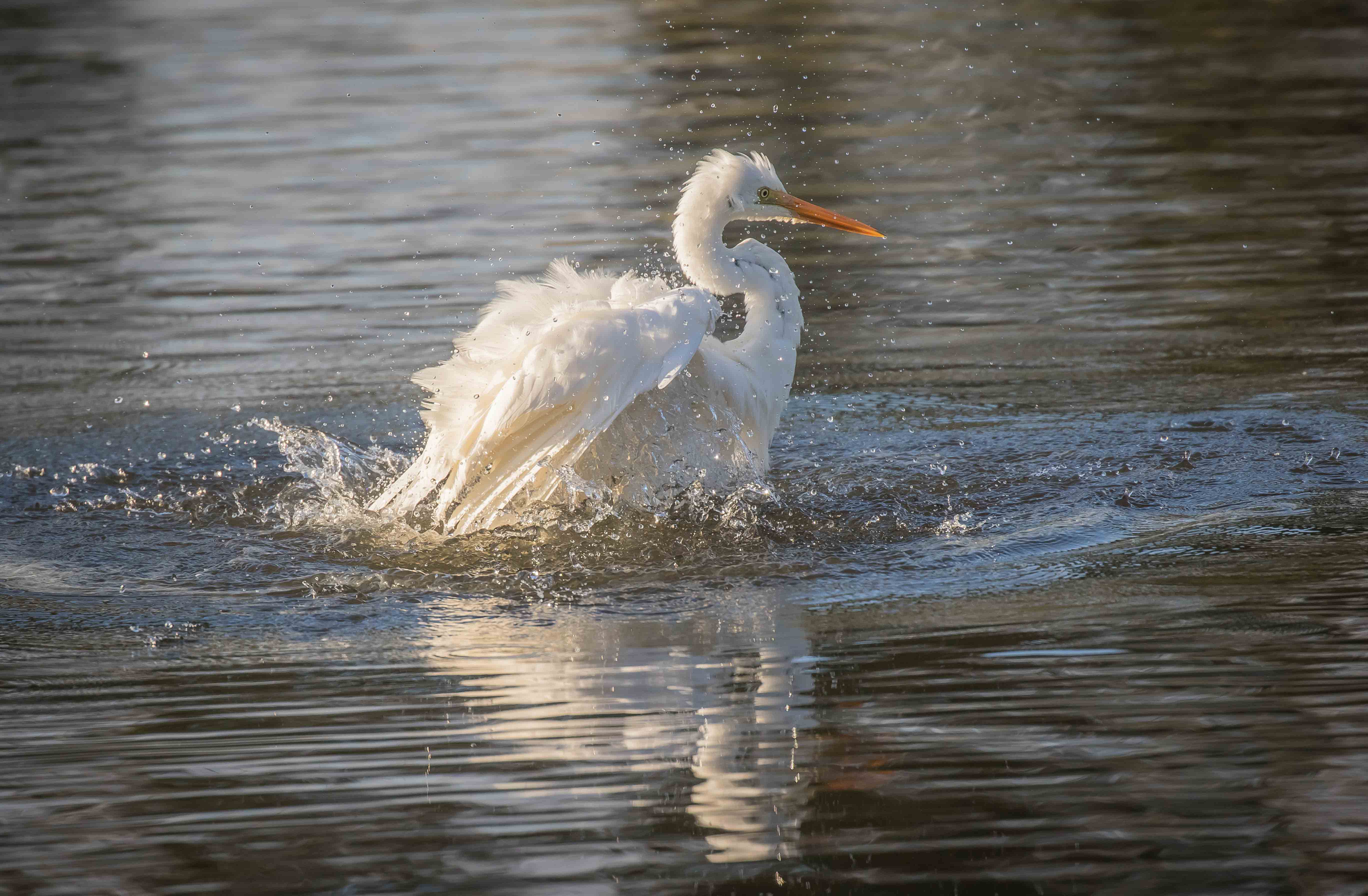 With the slow wilding of the local ex-golf course into an extensive wetlands and woodlands, more birds are spending time in the existing Elster Creek lagoons. One of the semi-regular visitors is the Great Egret below. The egret hunts along the creek during the day and in the evening flies to the larger lagoon for a quick bath and a preen.