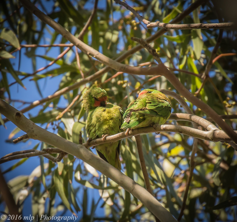 A sunny late afternoon walk along the creek produced the usual array of local birds, many with new families. We watched a pair of Long-billed Corellas feeding on grass seeds and later found a snoozing Cockatoo. It turned out to be One-eye, the partner to an escaped or released Cockatoo still wearing a cage leg ring. This couple has now bred in the same tree two years in a row and currently there are several chicks inside the big gum where we found One-eye.