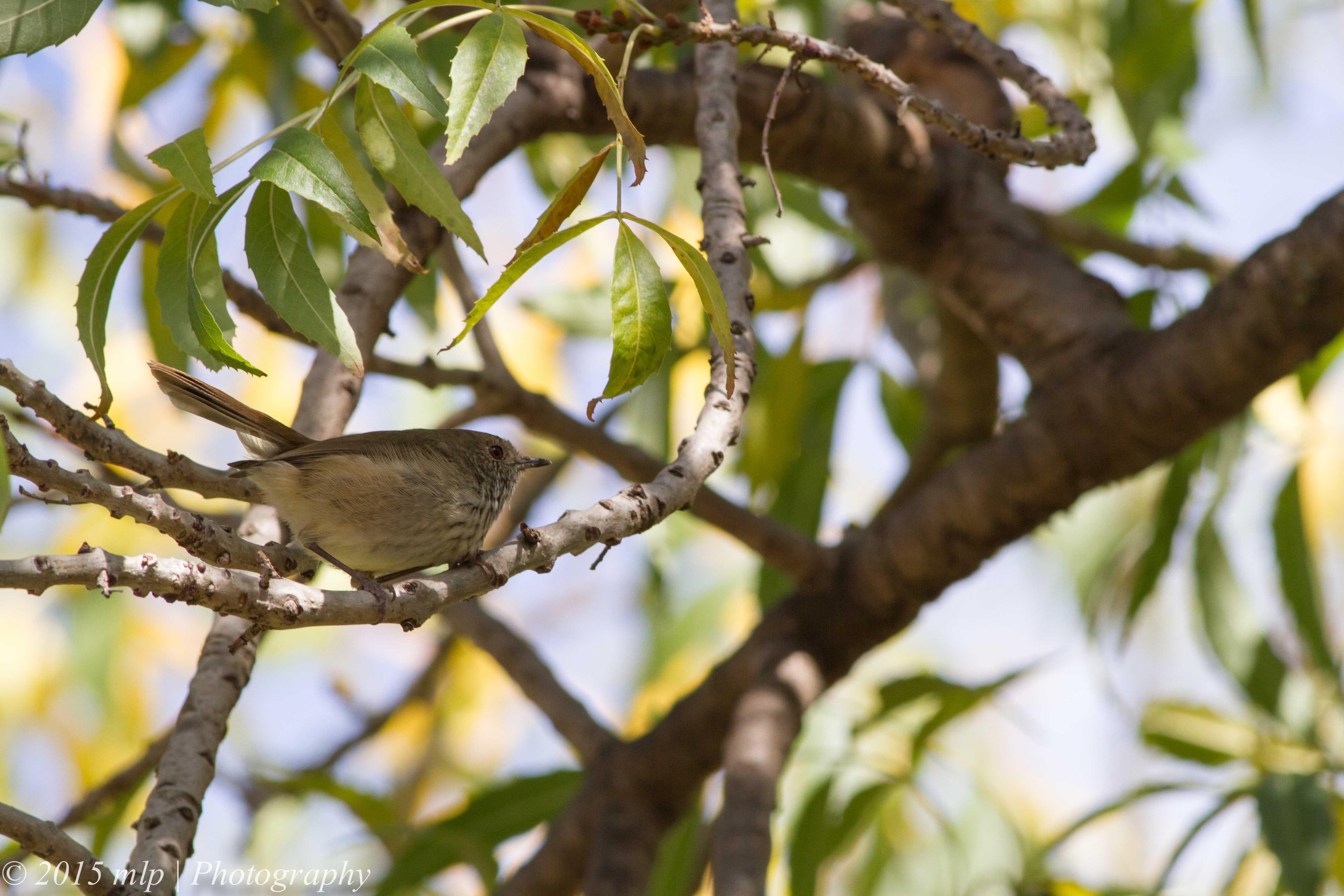 The Magpies stay put until a parent either comes to feed them or take them down onto the creek side grass. I can tell when the parent has arrived as the young Magpie starts making a begging call. While I watched the fledgeling it moved around the tree biting the leaves, bark, branches, flowers and any other bird in reach. Magpies don’t eat in trees other than to feed nestlings or fledgelings so it seemed to be killing time by exploring the branches and watching out for the parents (and occasionally watching me work in the back courtyard)
