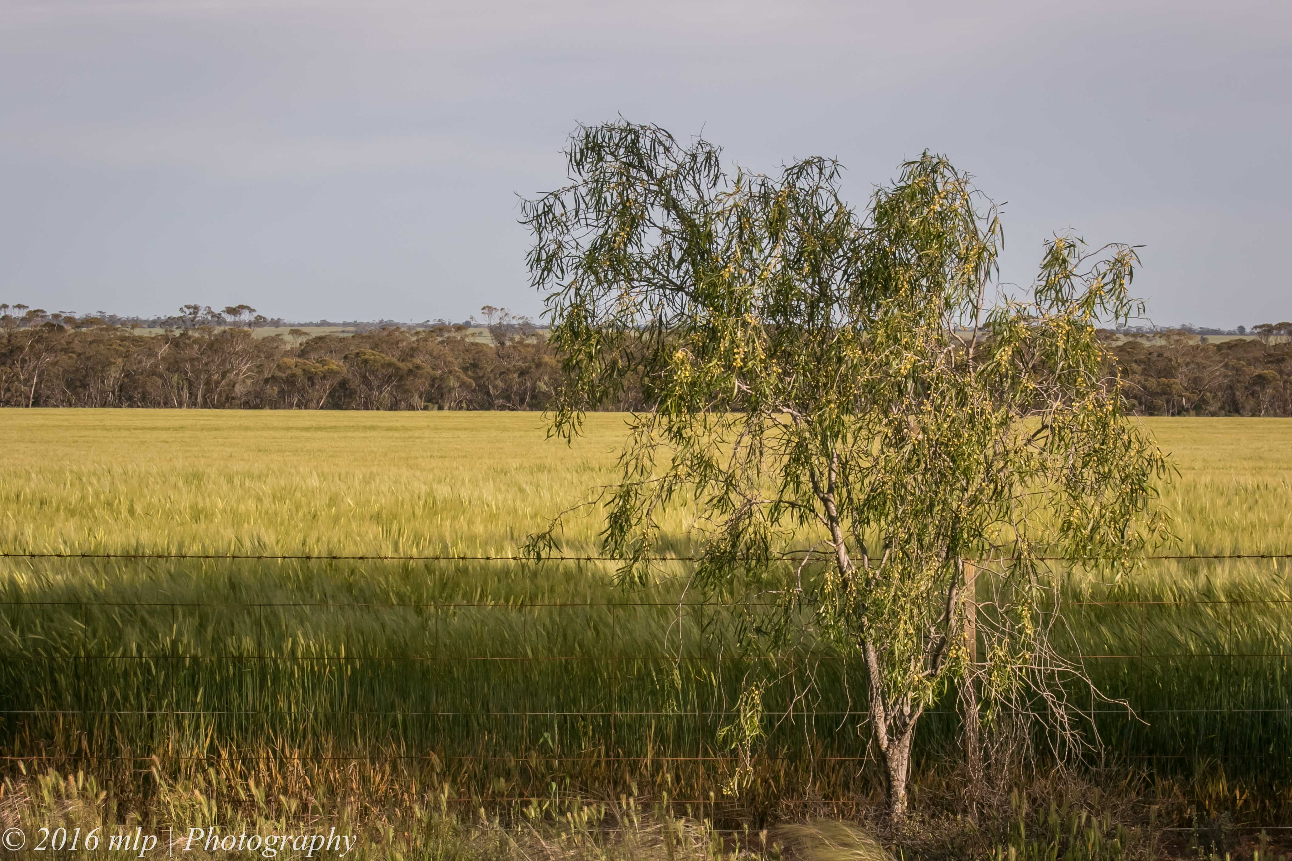 On my recent to trip North, I walked along one of the edges of the Goschen Bushland Reserve looking for birds. The early morning colour and light breeze made the new wheat look interesting. While photographing the wheat, a Raven flew to a nearby tree and collected what seemed to be wasps or flying ants.