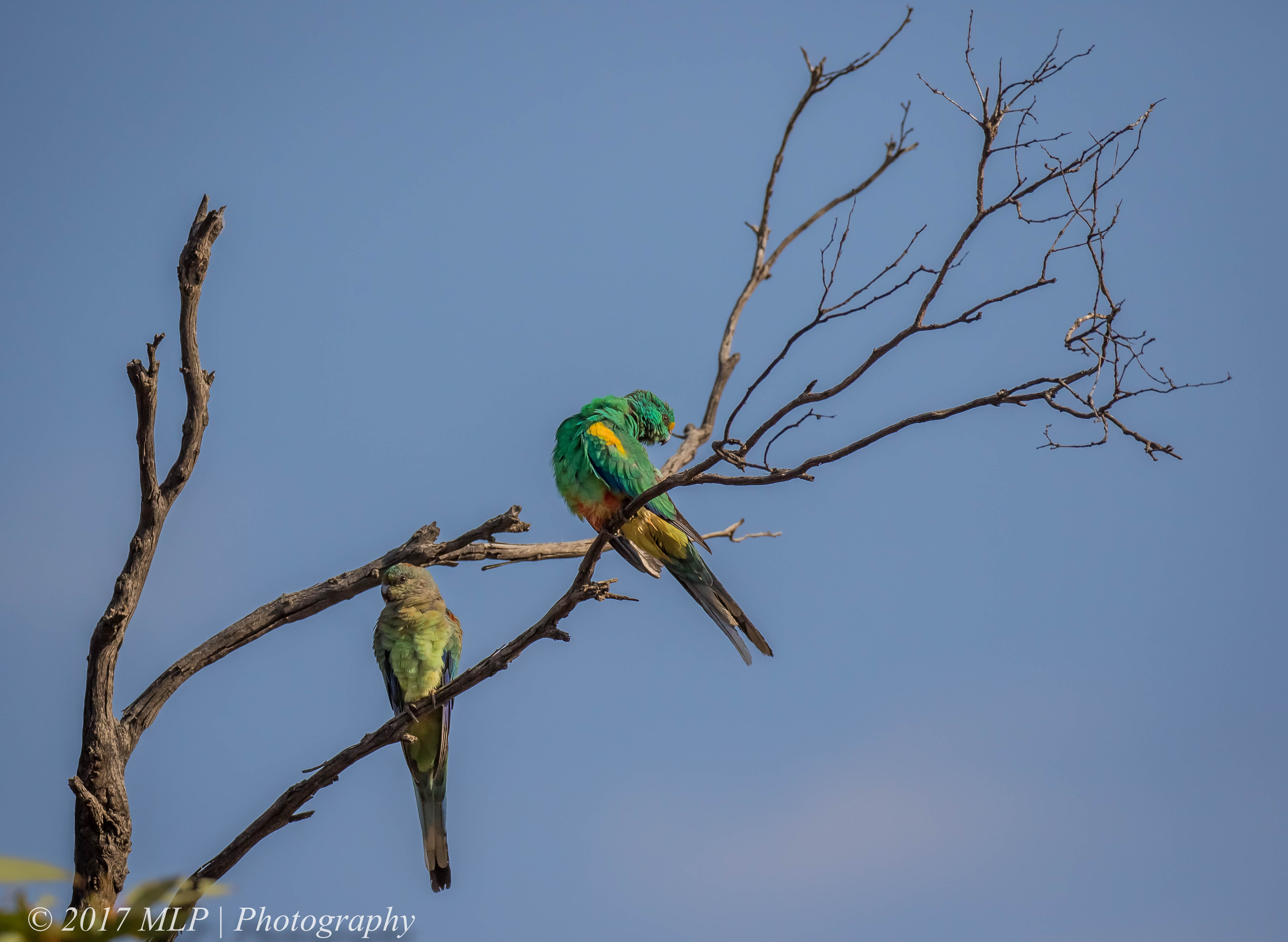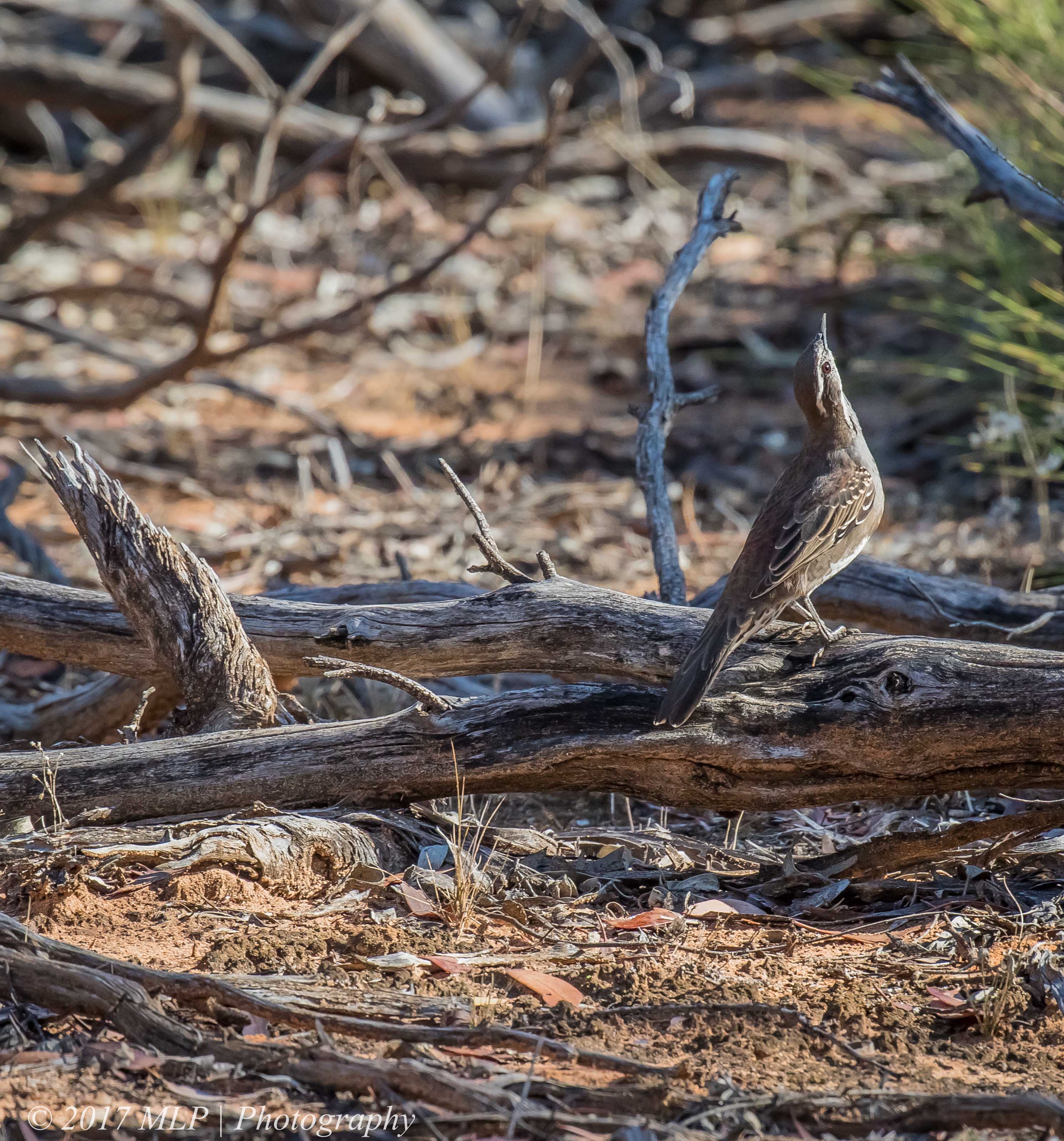 On the way back to the campground at Hattah Kulkyne National Park, I came across a group of Apostlebirds – so called due to their typical family group numbers being around 12. There were actually 10 that I could see of this particular group. They are very similar socially to the White-winged Chough. They are also mud nest builders. When I pulled over and parked the car I was watched by a lookout. I tried to be careful and make sure the flock did not flush. Standing still I watched and photographed the lookout. He watched me and then flew down and walked towards me. He walked right up to the back of my legs, around me and then onto the rest of the flock. Choughs will only let you approach after a time and will easily flush. Both species place lookouts to watch for predators or neighbouring tribes. This flock of Apostlebirds had a territory close to the camp grounds and I assume had become quite used to people.