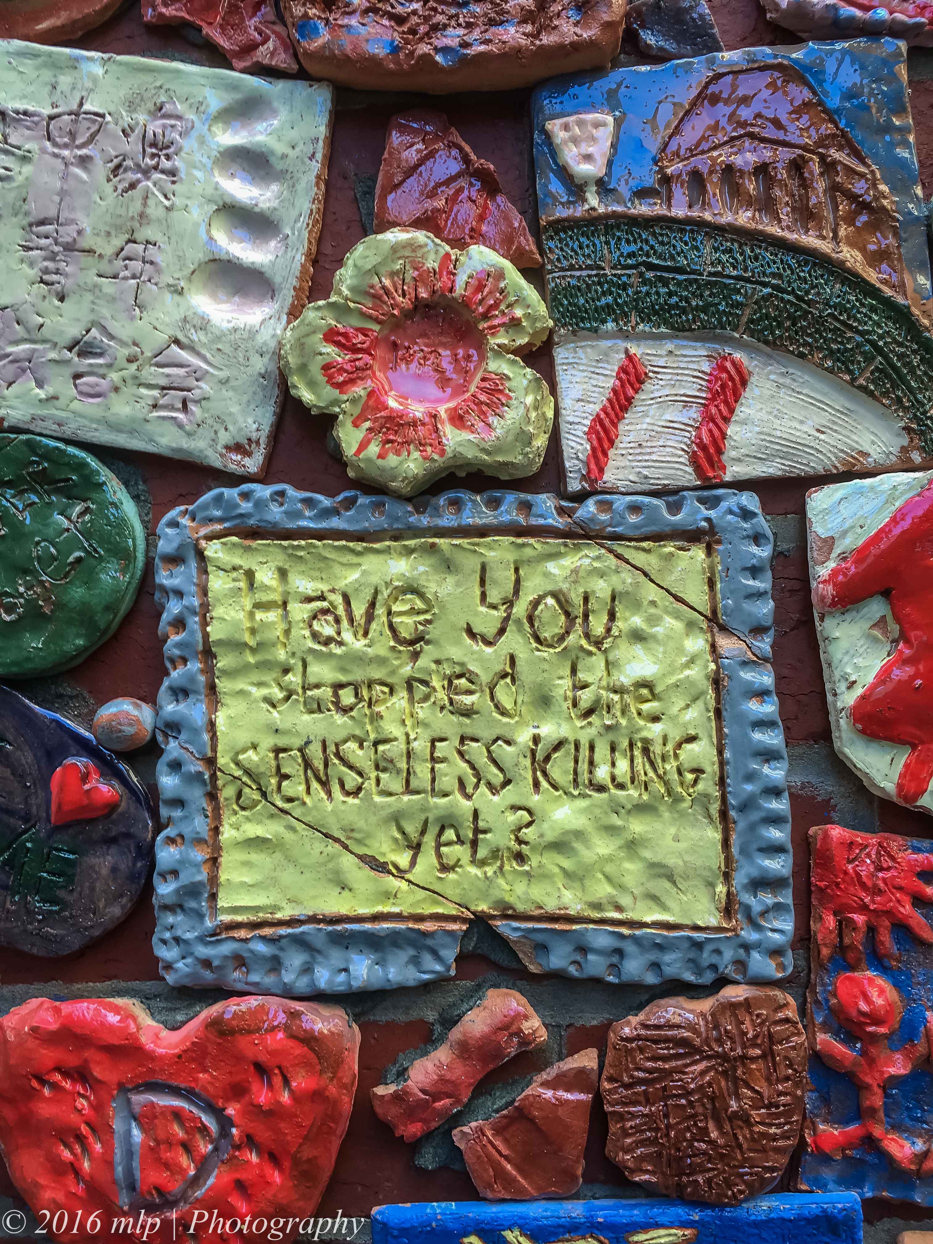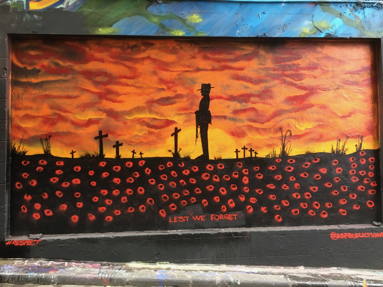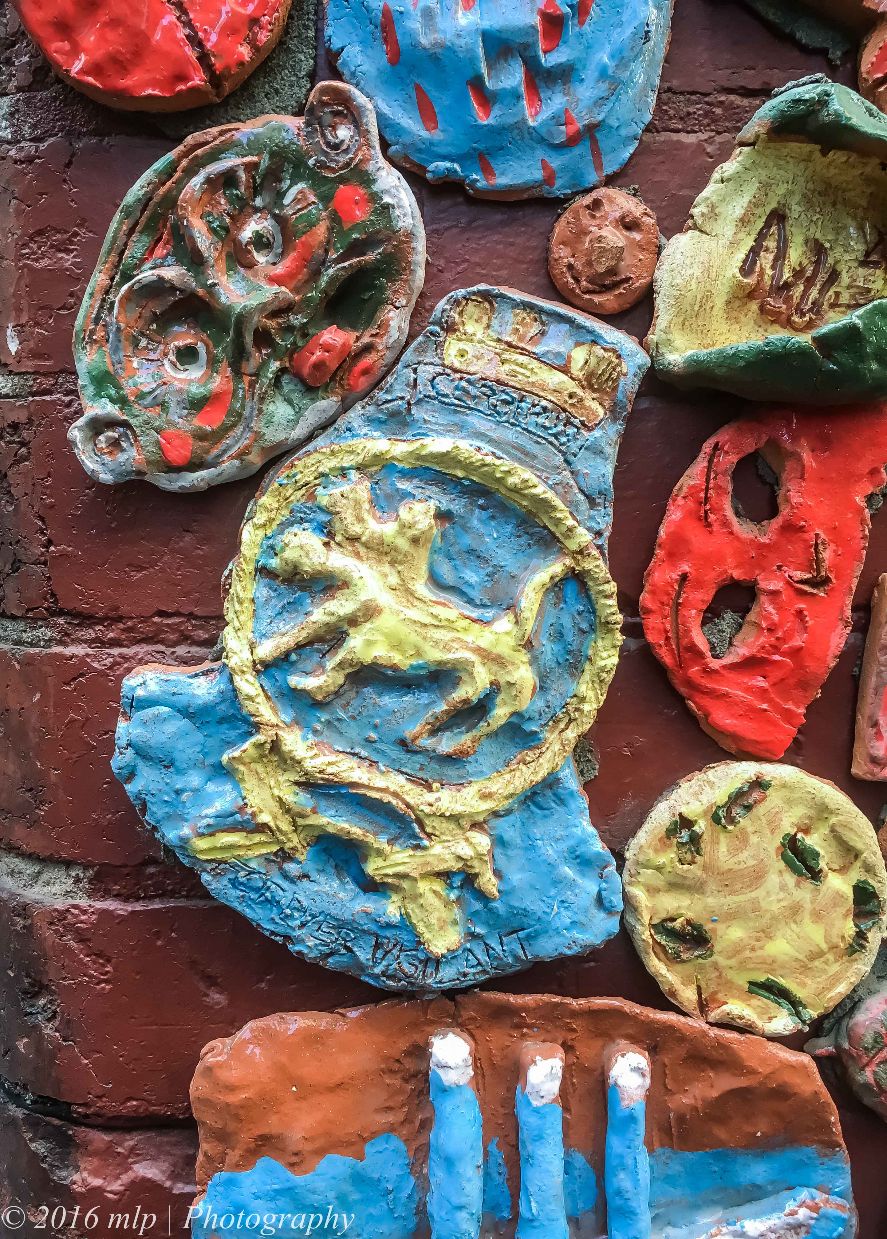 In Drewery Lane at the rear of Legacy House, a special project has been slowly developing over the last few years. A mosaic artist, Sankar Nadeson, has been creating long walls of ceramic tiles and mosiacs. Sankar is a skilled mosaic artist, tiler and teacher. He has been working with schools and various art programs to teach people how to make ceramic tiles and then putting them up onto the walls of Drewery Lane. The theme of the art work has been Legacy. Legacy is a charity organisation that supports families of defence force personnel who have been injured or killed. Many of the tiles below were made by kids with strong ties to the defence forces.