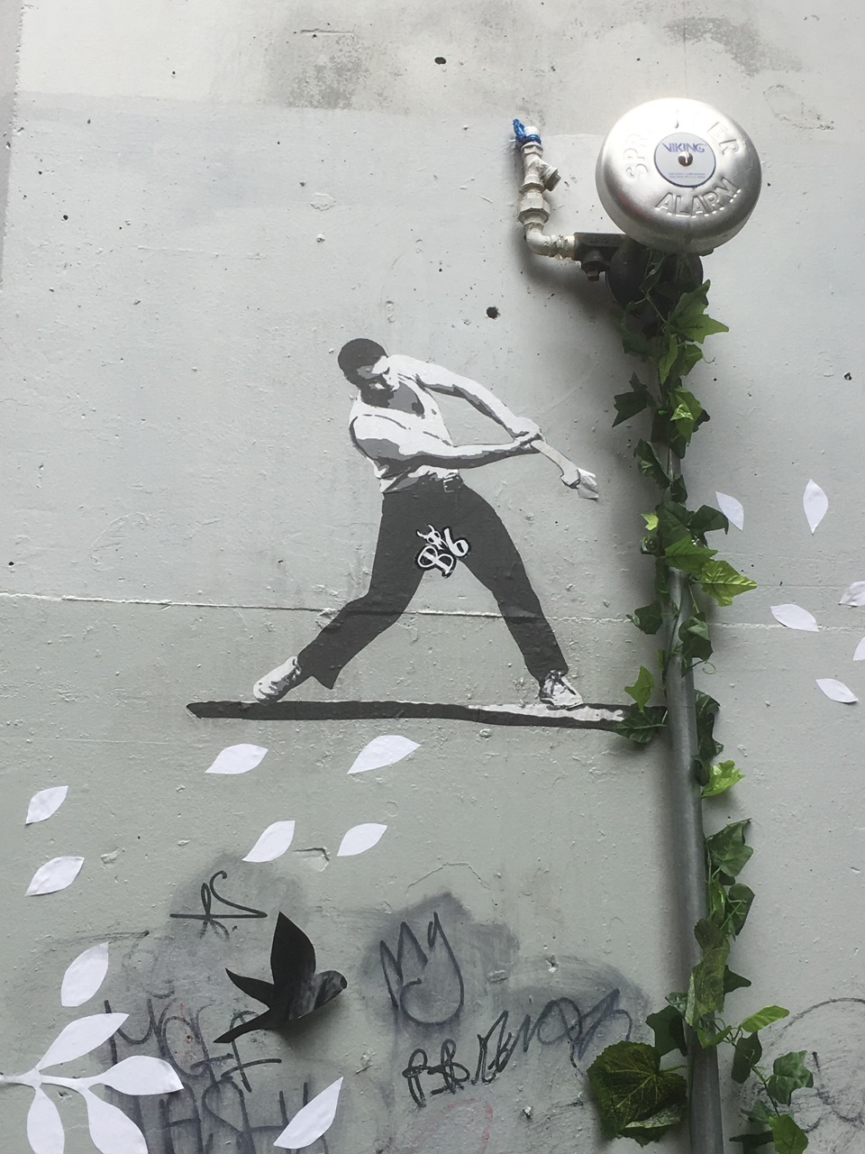 I found an old map of the various street art alleys and laneways. Over the last few weeks I have been checking several of these old sites for any new works. Many of the map’s sites are gone now, the laneways still exist but the sides are new tower blocks for student and cheaper apartment housing. One gem that I did find full of interesting large murals was Finlay Alley –  an alley, that doglegs into a dark covered lane. There is a new block going up soon on one of the perimeters and hopefully the site won’t be altered too much