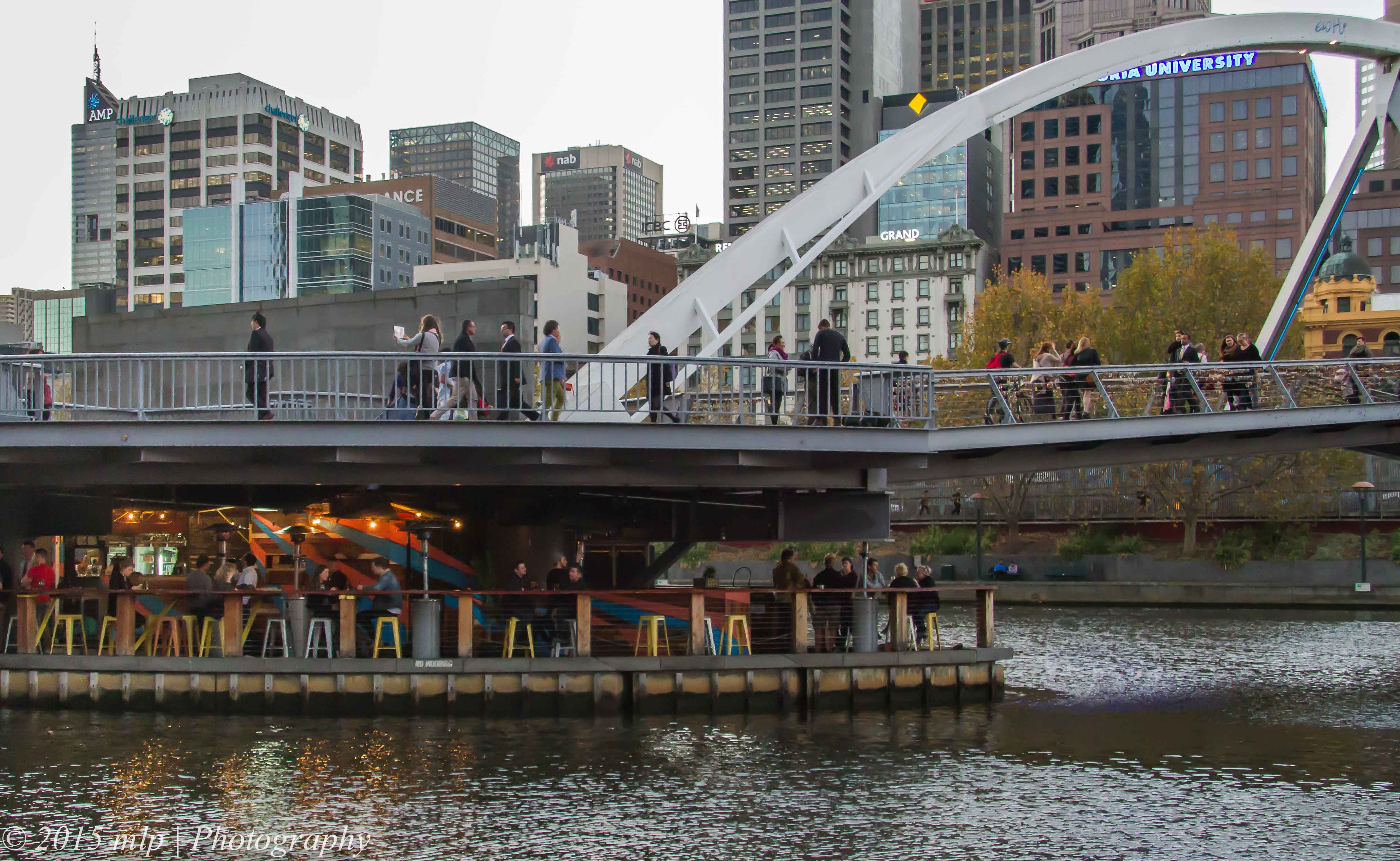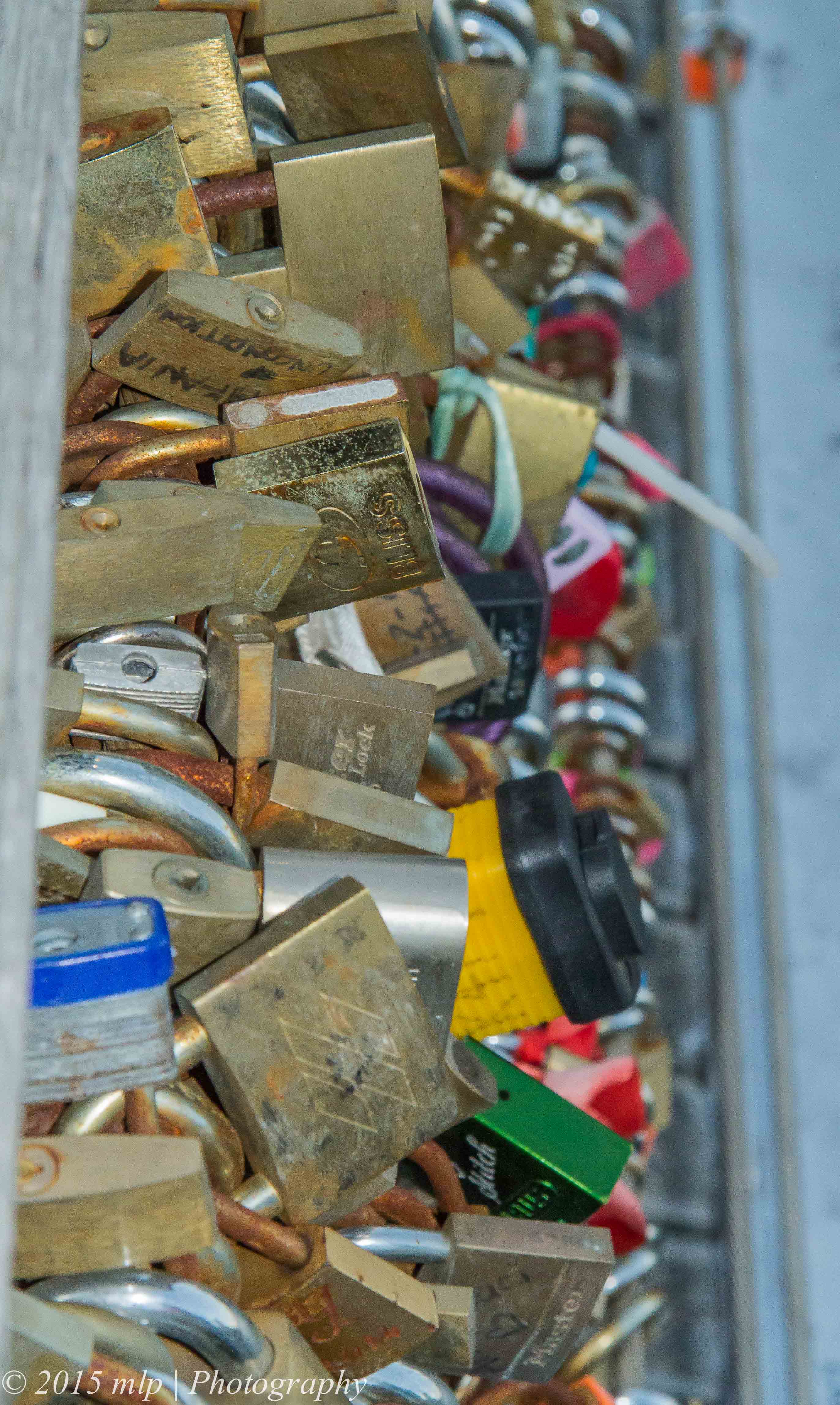 The padlocks have been removed. 20,000 signs of committed love cut from the sagging wires of the foot bridge. Stored in buckets until the City Council can figure out what to do with them. They lasted for 3 years and due to their weight and that other cities like Paris were removing their padlock chains (apparently because the fad is over) we have lost ours too. A few weeks ago I just happened to be on the river after work with a friend and we stopped to take a few practice pics of the evening views and the city skyline as the light faded and the city lights kicked in.