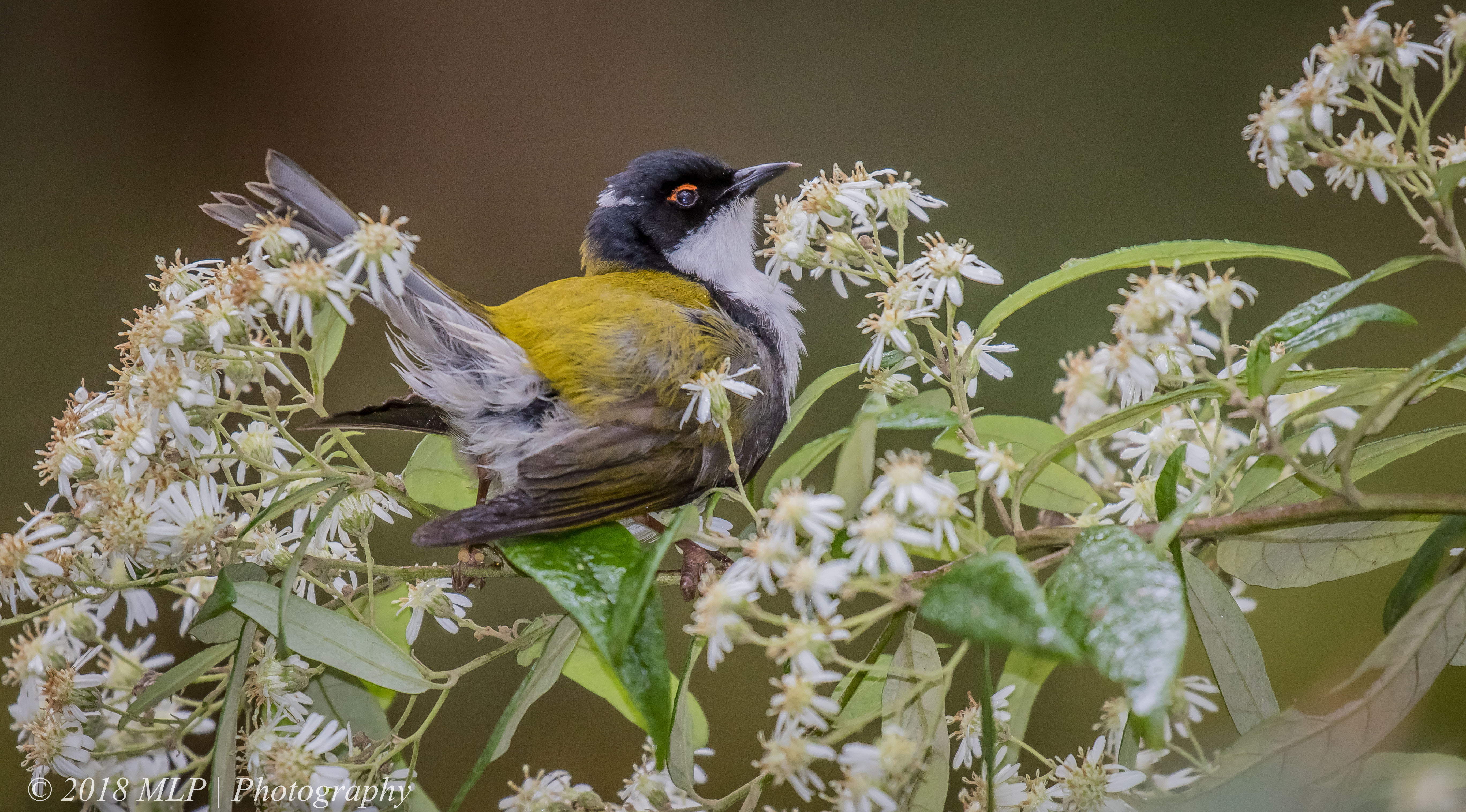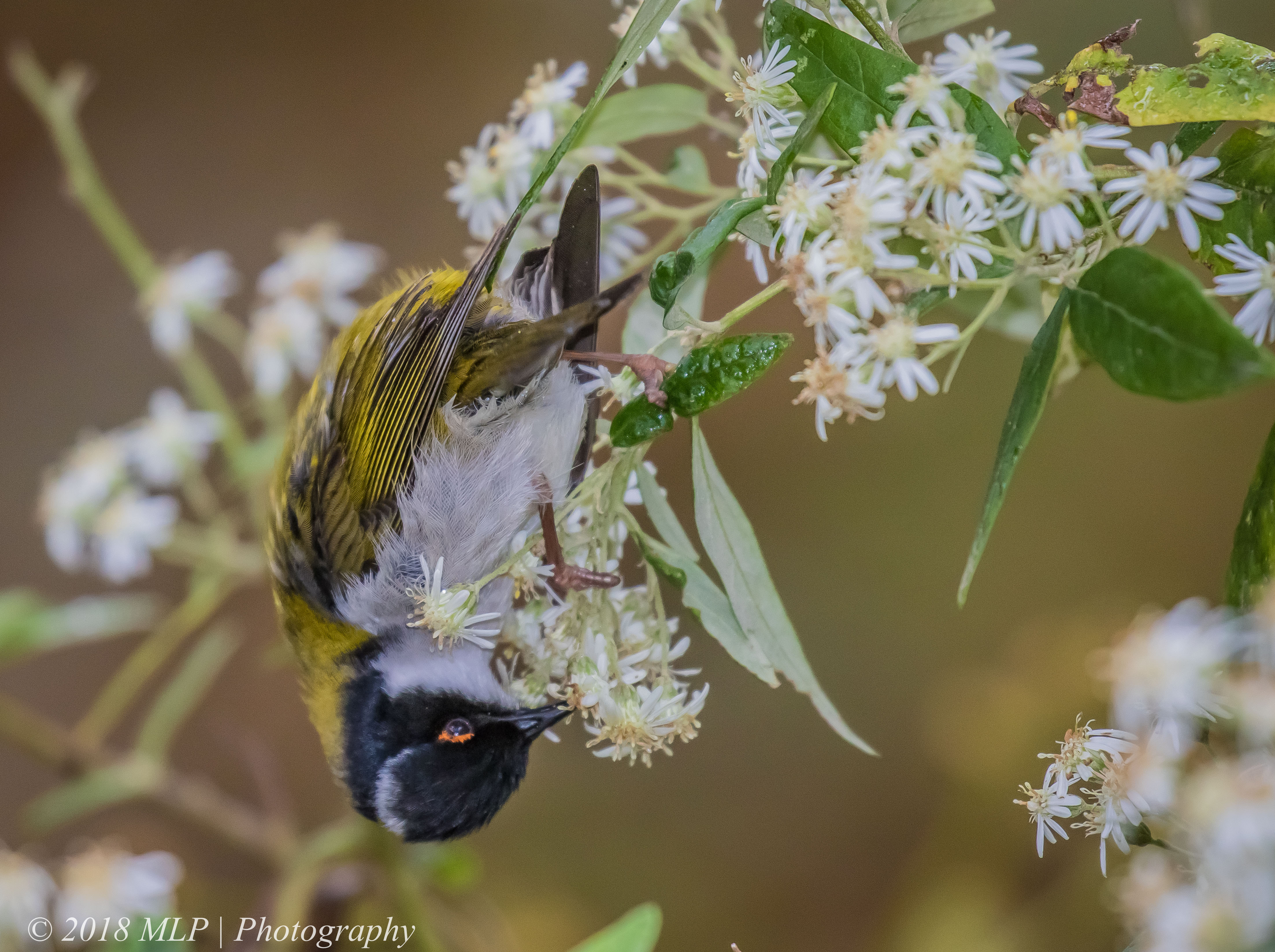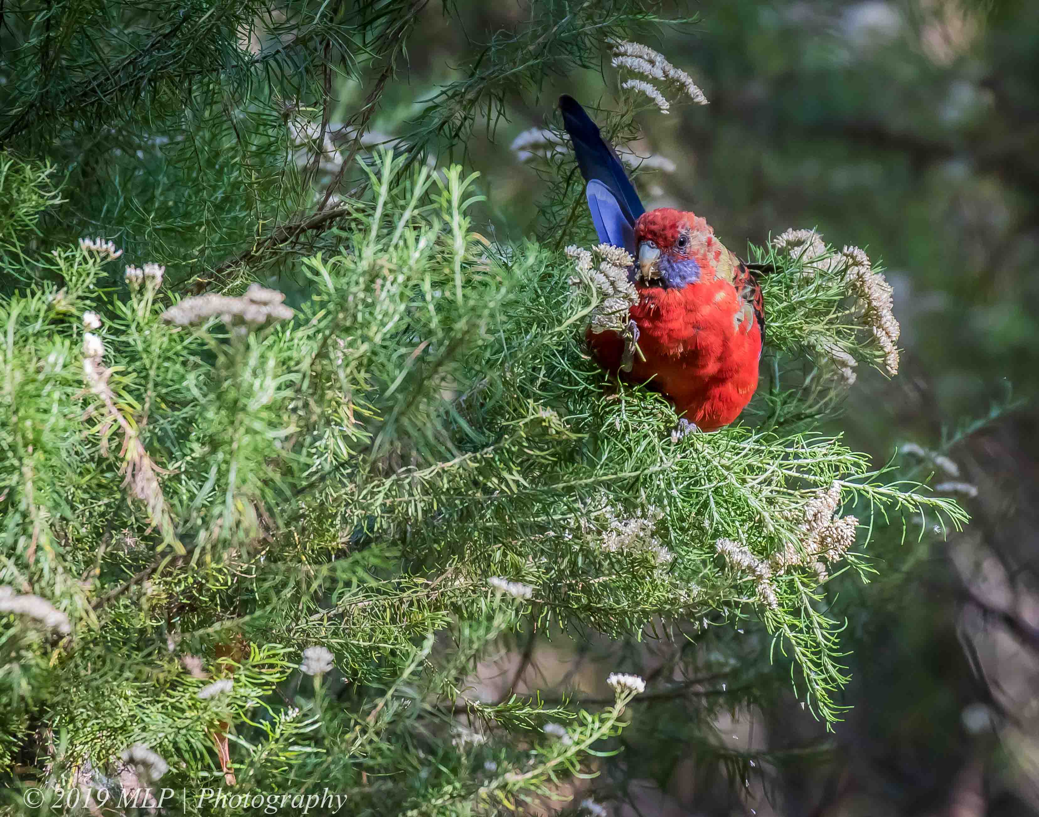 While I was standing still and studying the Superb fairy-wrens for the ebird study, I noticed a Yellow Robin flying into a nearby prickly current-bush. I soon found its late season (or second) nest and watched as the Robin made several trips bringing back spider-web and soft materials for the interior of the nest. It would squeeze itself down and shape the bowl.