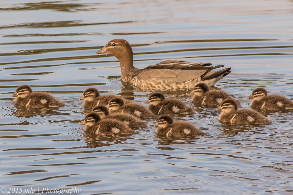 At the local wetlands lake I ran into a birding friend Gio, and we walked along the banks together planning our next day trip into the bush. We came across  a family of Wood Ducks that had nested nearby and were now raising 10 checks. Wood Ducks have quite large families and I think it is needed as quite a few chicks are taken by many predators. Wood Ducks are usually pretty calm around people and just wander back to the water if you approach but these adults were much more nervous of us and took to the water straight away.