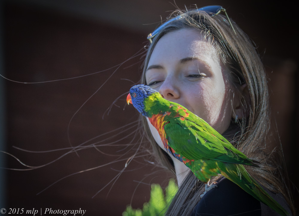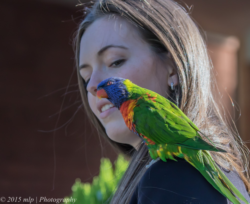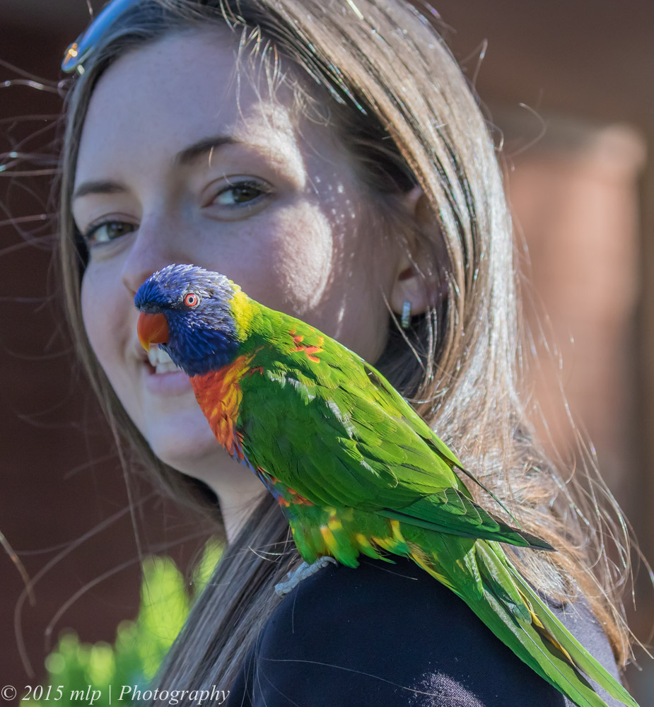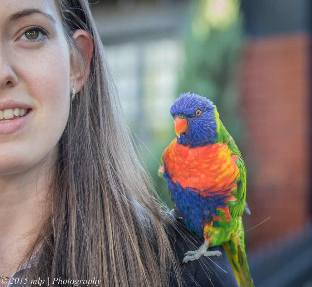 While visiting Braeside Park on the weekend I was photographing a nesting Tawny Frogmouth, and two Rainbow Lorrikeets decided to investigate.