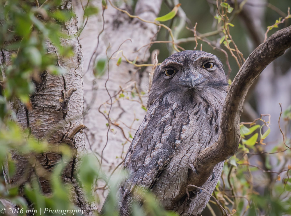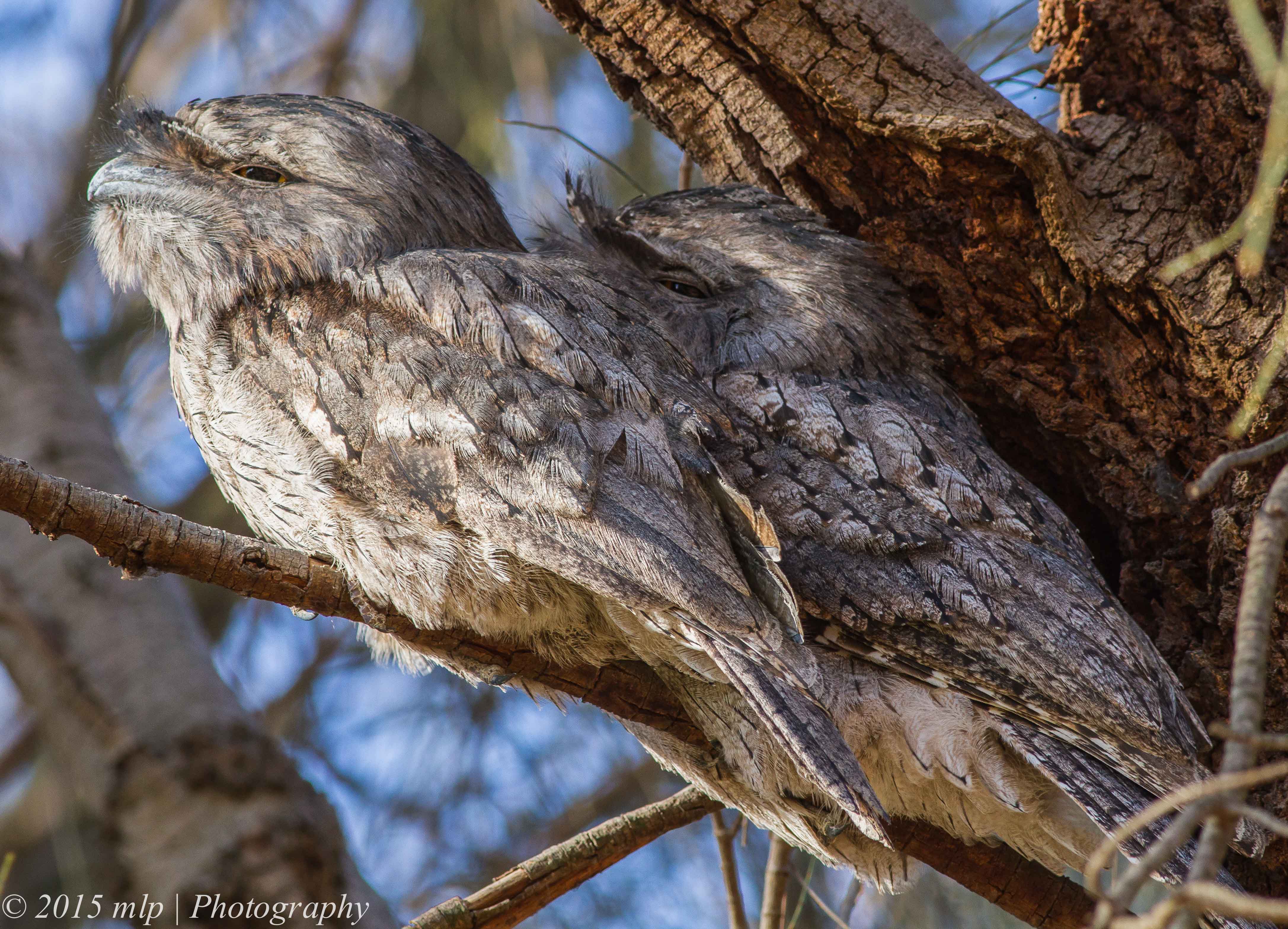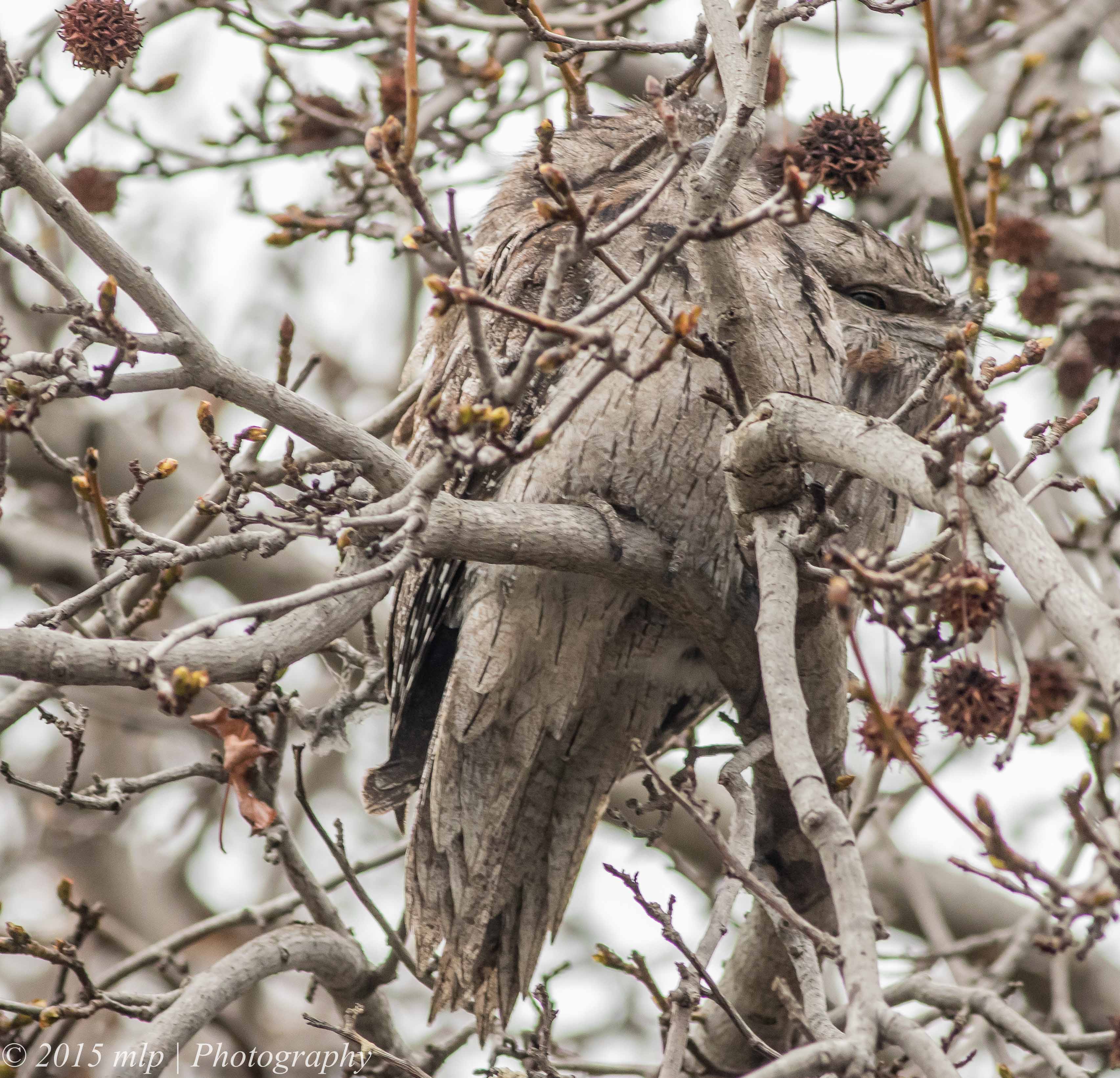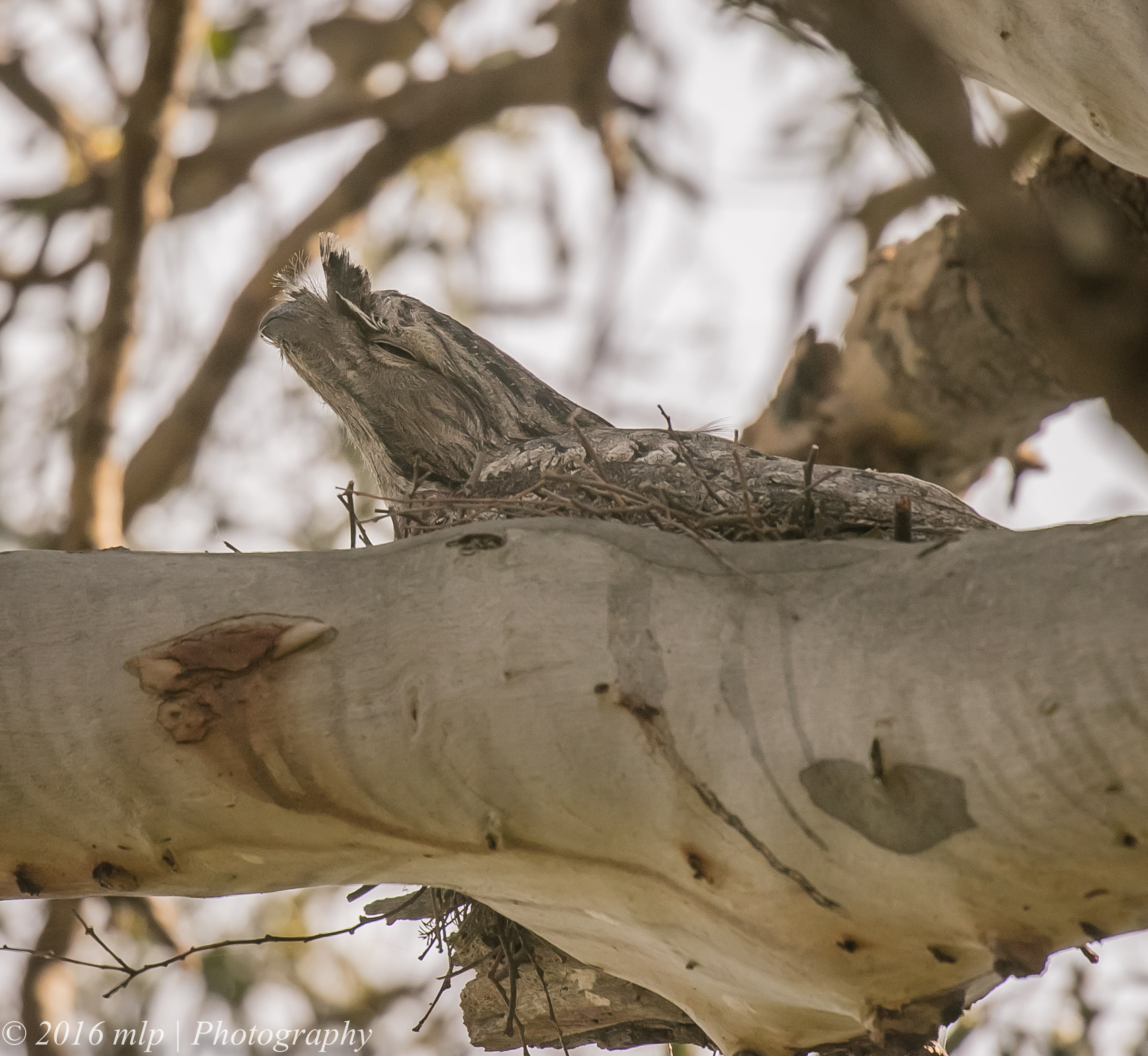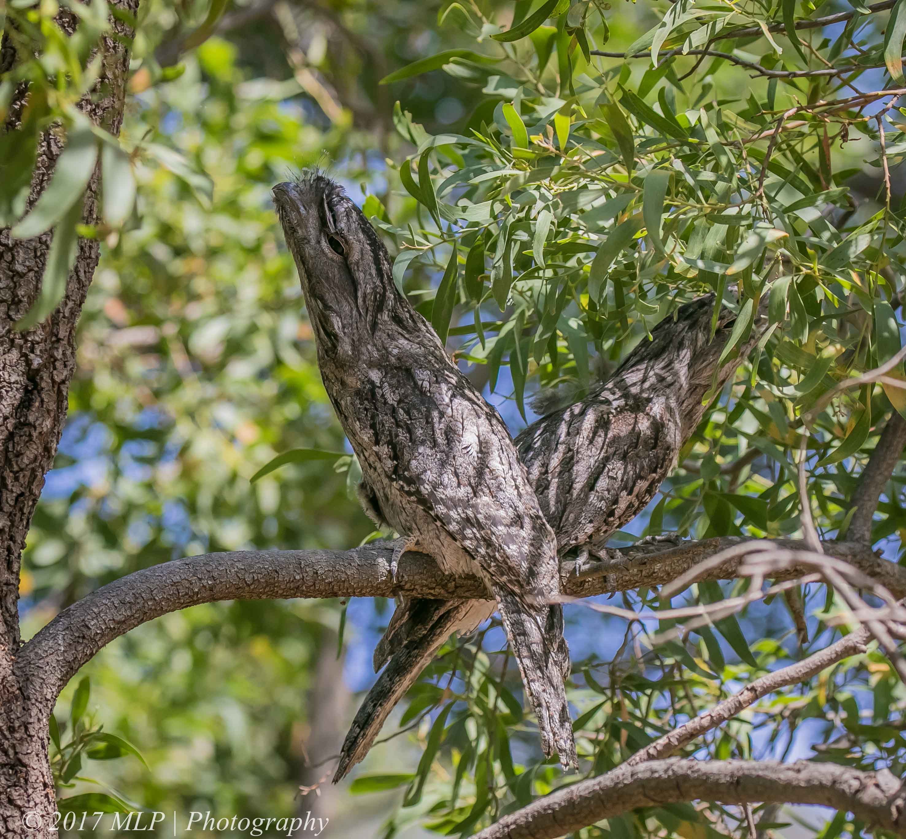 On a walk up the track to the top of the Moorooduc Quarry I found a dozing Tawny Forgmouth on a low branch. He was quite relaxed until a group of walkers joined me and he stretched into his branch like pose and then eased back once they moved on.