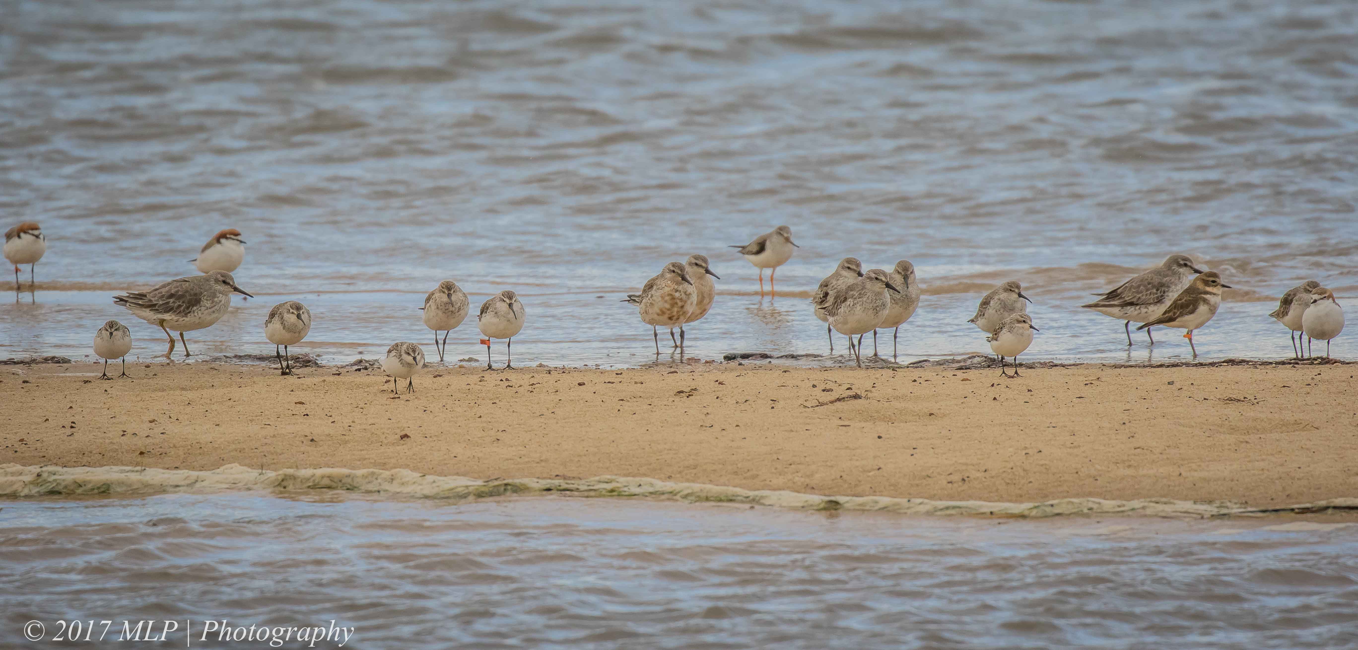 Stockyard Point near Jam Jerrup in Western Port Bay is a good spot for some high tide wader watching. Once the tide rises many of the waders move across from feeding on the exposed low tide mud flats to the sand spits for a bit preening and sleeping. One of the many species found here is the Australian Pied Oystercatcher, a fairly common bird found along the coast. Not so common and in fact not previously reported in Victoria is the (NZ) South Island Pied Oystercatcher. The SIPO is very similar looking to the Aussie version but with shorter legs, longer bill and different white plumage on the back and underwing. In late June a keen eyed birder spotted this NZ vagrant, and since then many birders have taken the long beach walk to the point to twitch for the SIPO. On the day we trekked to the point, we spent many hours on the spit, met quite a few birders, found the South Island Oystercatcher (lifer 346) and photographed many other waders. In winter one does not expect to see many waders in Victoria but we were amazed at how many different species had over-wintered in the south rather than fly back to Siberia to breed. A few of the experienced birders suggested that it was due to a very good breeding season in the north in 2016 and that 1st year birds tend to over-winter rather than fly back north. It was long day, standing for 6 hours, exposed to bitingly cold southerly winds, at times wet, but it was one of the best days of birding I have seen.