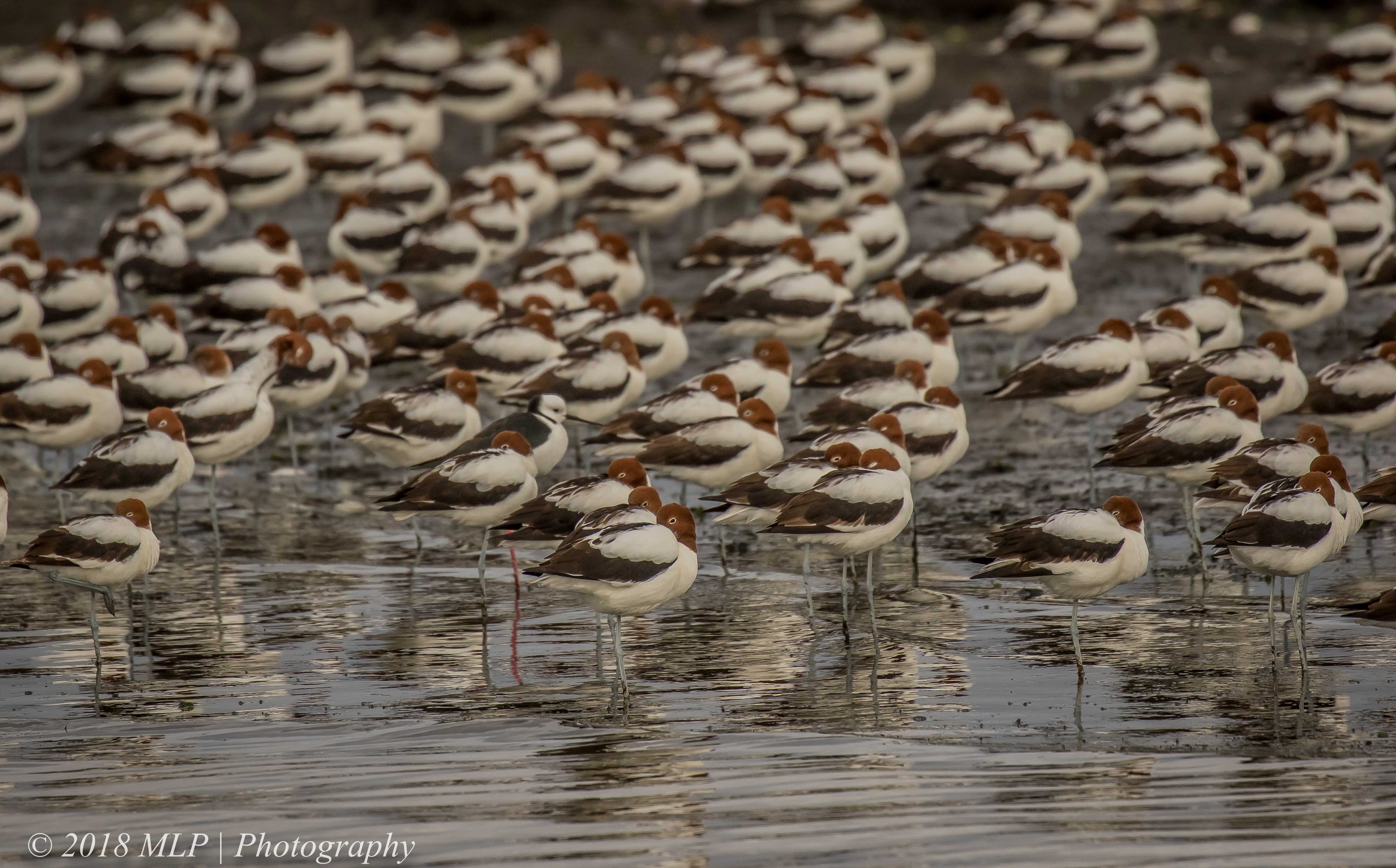 Just to the north of the coastal bird-hide in the Lake Borrie Lagoons (Western Treatment Plant) is the mouth of the Little River. It is a great spot for various roosting birds at the high tides. On this occasion we found dozens of Red-necked Avocet roosting and preening and a few metres a small family of Black-winged Stilts.