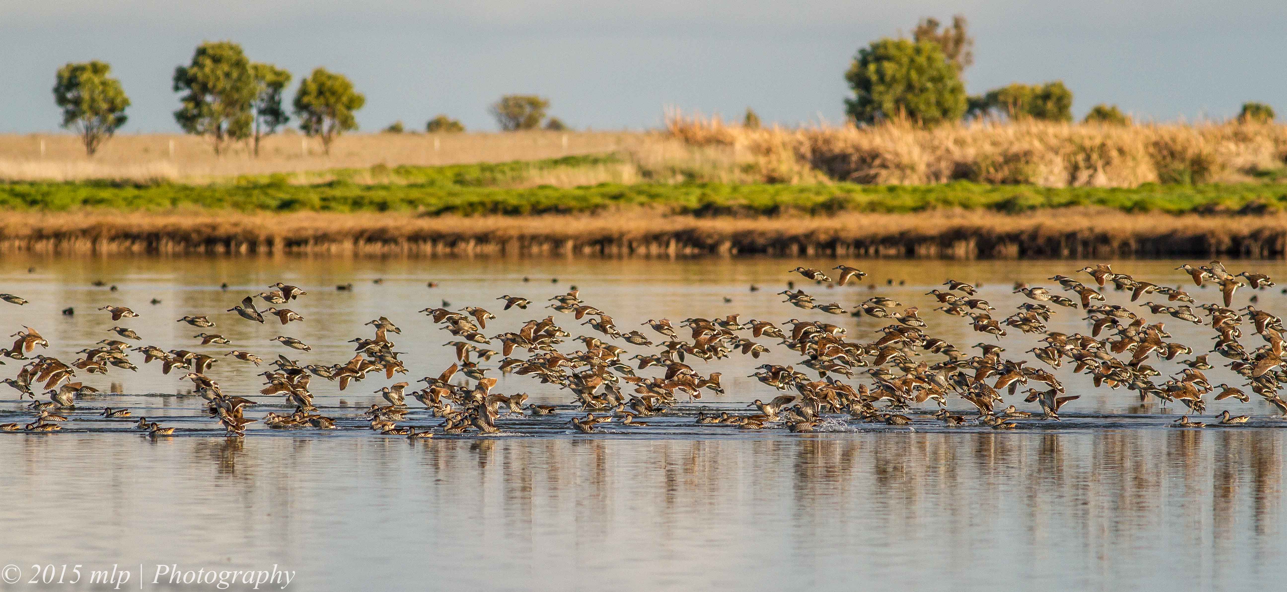 Shorebird flock, Western Treatment Plant – mostly Red Necked Stints and and Sharp Tailed Sandpipers