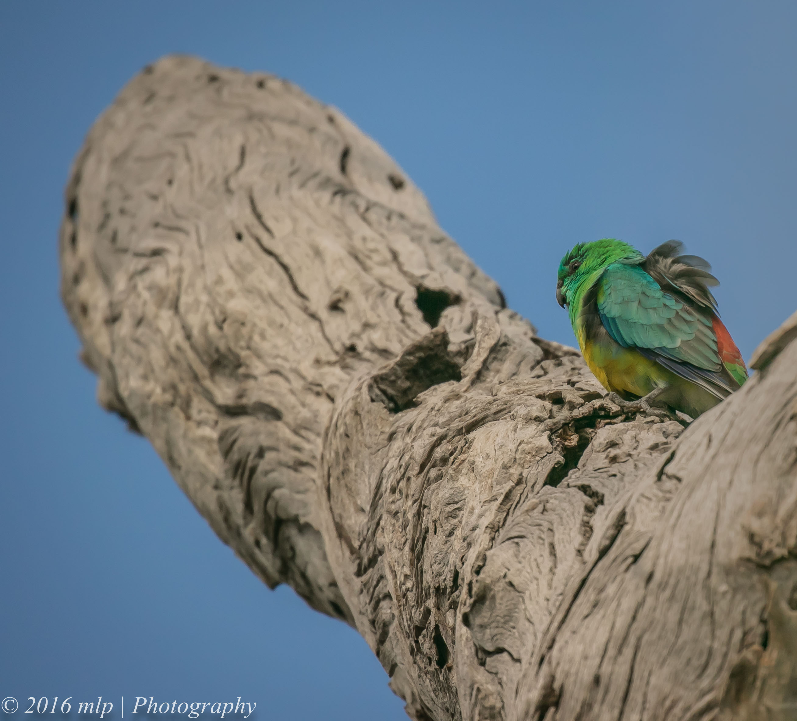 I walked around Braeside Park last week with a few friends. It has been a while since I have explored this part of the park having spent more time recently looking around the neighbouring Woodlands Industrial Estate wetlands. With all the rain over winter the lagoons have filled up nicely and there is a lot of fresh growth. There was quite the buzz around the park as many parrots, lorikeets and cockatoos searched for and explored every hollow they could looking for suitable nest sites. Once claimed the nest sites are vigorously and noisily defended. The highlight of the day was a large dead tree with a quite a number of hollows that seemed to be occupied by Red-rumped Parrots – a parrot apartment block. While it is still Winter here, one can definitely feel the change coming as the birds move into gear for the new breeding season.